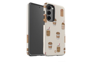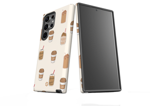 Fuel your love for coffee with the Brewed Bliss Phone Case, available for the Samsung Galaxy S23 series. Featuring a playful pattern of coffee cups on a cream background, this design is perfect for coffee enthusiasts who can't resist a good brew. Whether you’re into a hot latte or a refreshing iced coffee, this case captures your daily caffeine fix.