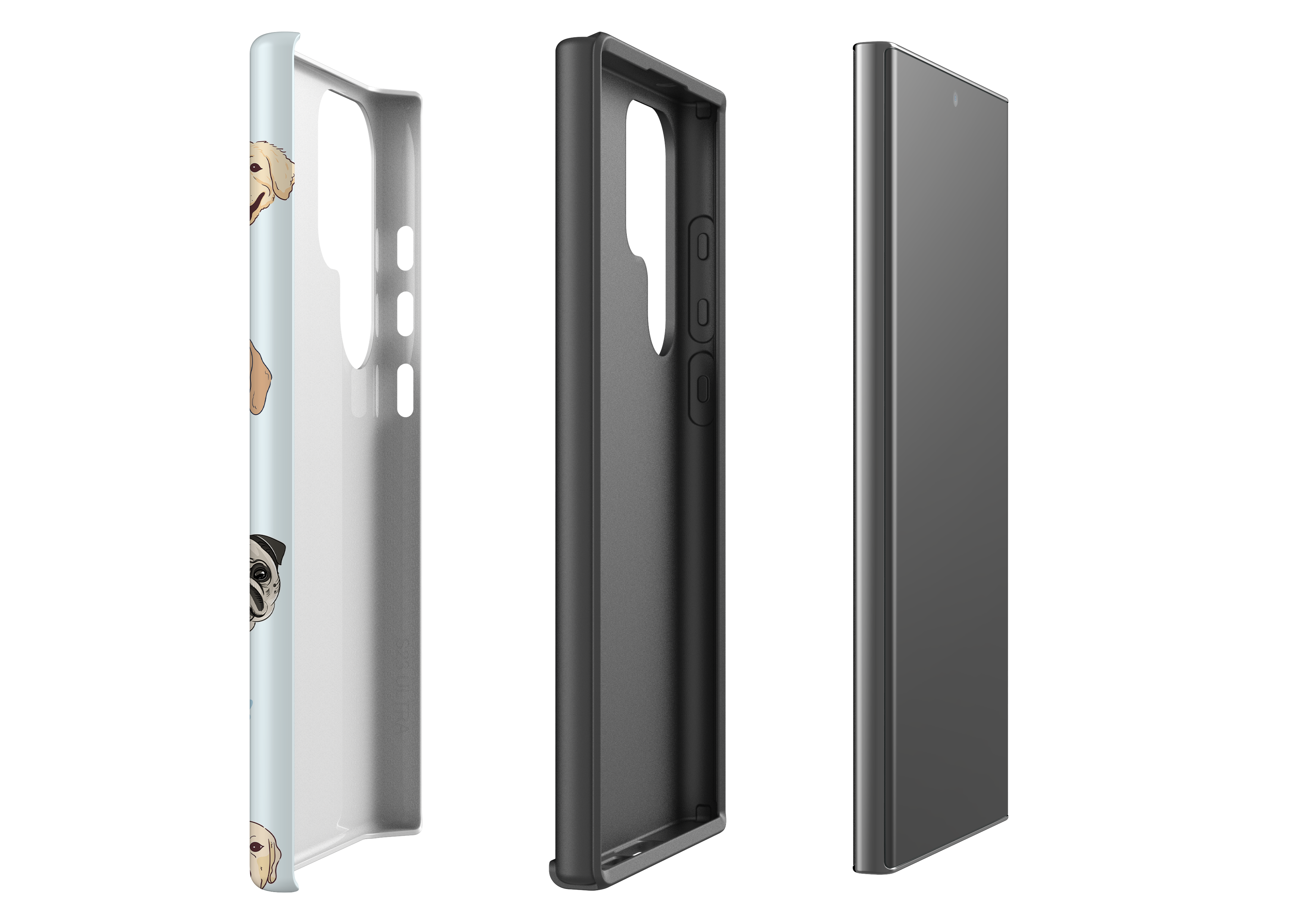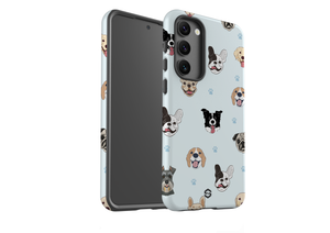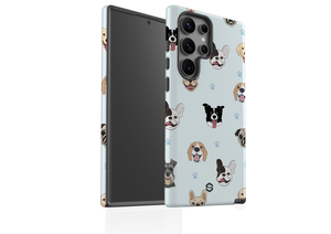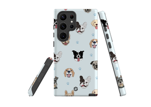 Celebrate your love for man's best friend with the Canine Charm Phone Case, available for the Samsung Galaxy S23 Series. Featuring a playful pattern of adorable dog faces, this delightful case will bring a smile to your face and remind you of your canine companions wherever you go.