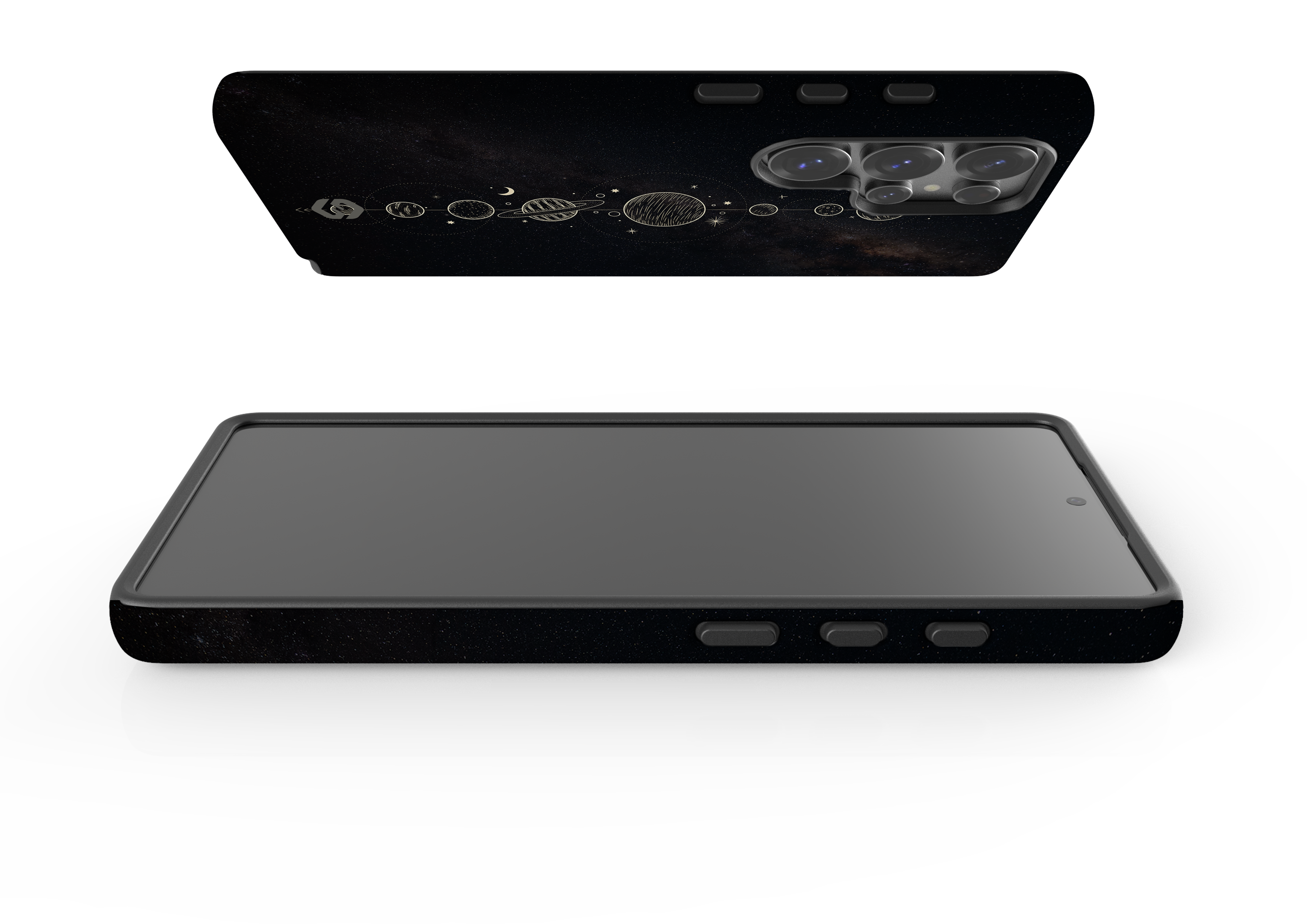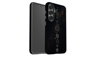 Step into the celestial harmony with the Cosmic Symphony Phone Case, available for the Samsung Galaxy S25 series. Featuring a vertical arrangement of intricately drawn planets and moons against a dark, star-speckled background, this case brings the vastness of space to your fingertips with a touch of minimalist elegance.