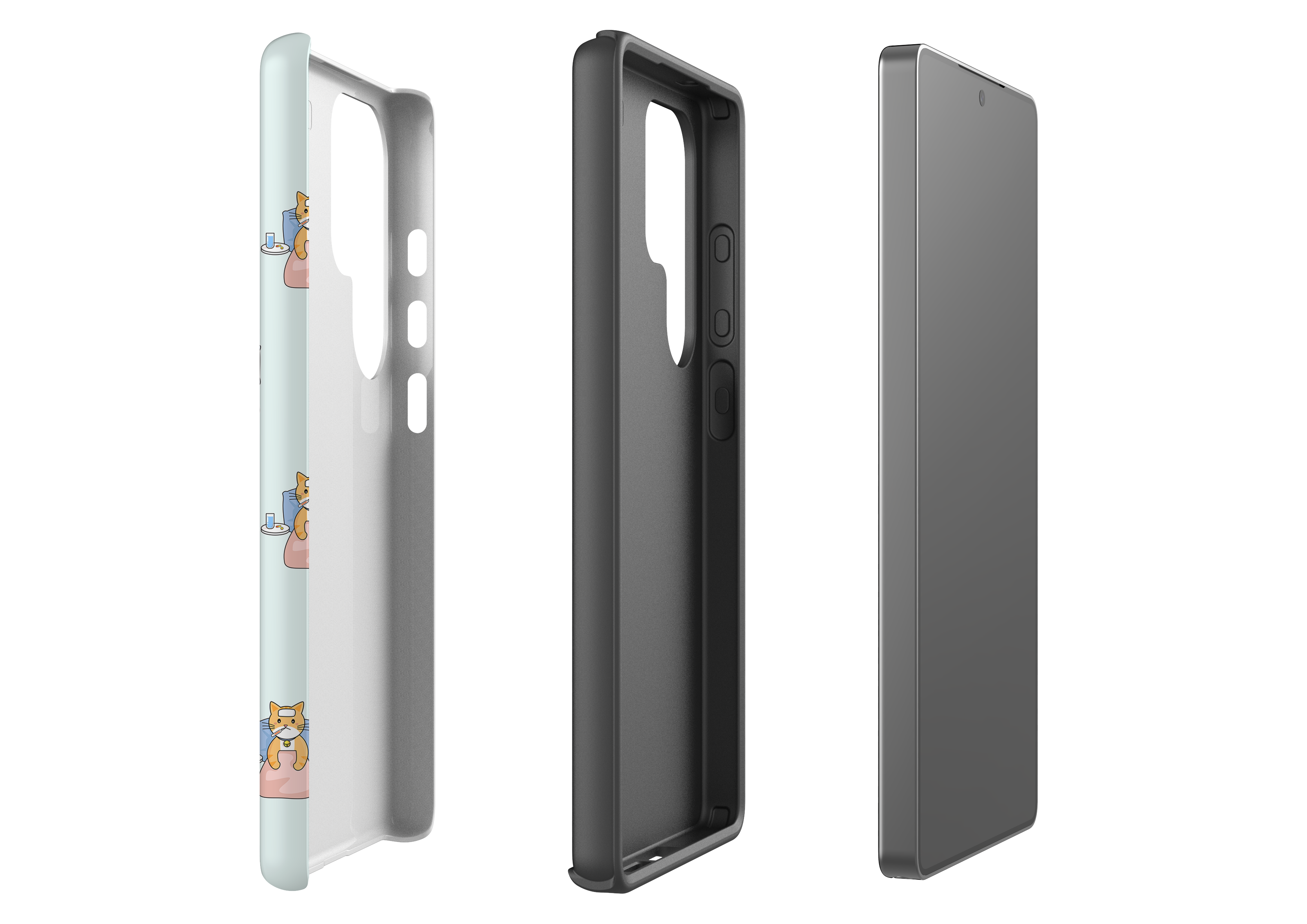 Get cozy and comfortable with the Cozy Cat Case, crafted for the Samsung Galaxy S25 series. This charming design features a pattern of orange cats tucked into bed, complete with a snack tray and the world’s cutest sick-day vibes.