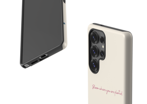 Embrace elegance with the Garden Bloom Phone Case, specifically crafted for the Samsung Galaxy S25 series. Featuring charming pastel wildflowers and an uplifting message that encourages you to embrace your journey, no matter where life takes you, and flourish in your own unique way. The soft cream background beautifully complements the intricate floral designs at the bottom, creating a serene look.