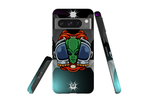 The Alien Core Case, designed for the Google Pixel Series, is a bold and trippy tribute to alien encounters and retro space dreams. It features a green extraterrestrial flanked by two halves of an astronaut head, along with glowing starbursts and warped linework to add a touch of interstellar funk to your everyday orbit.