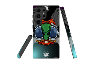 The Alien Core Case, designed for the Samsung Galaxy S23 Series, is a bold and trippy tribute to alien encounters and retro space dreams. It features a green extraterrestrial flanked by two halves of an astronaut head, along with glowing starbursts and warped linework to add a touch of interstellar funk to your everyday orbit.