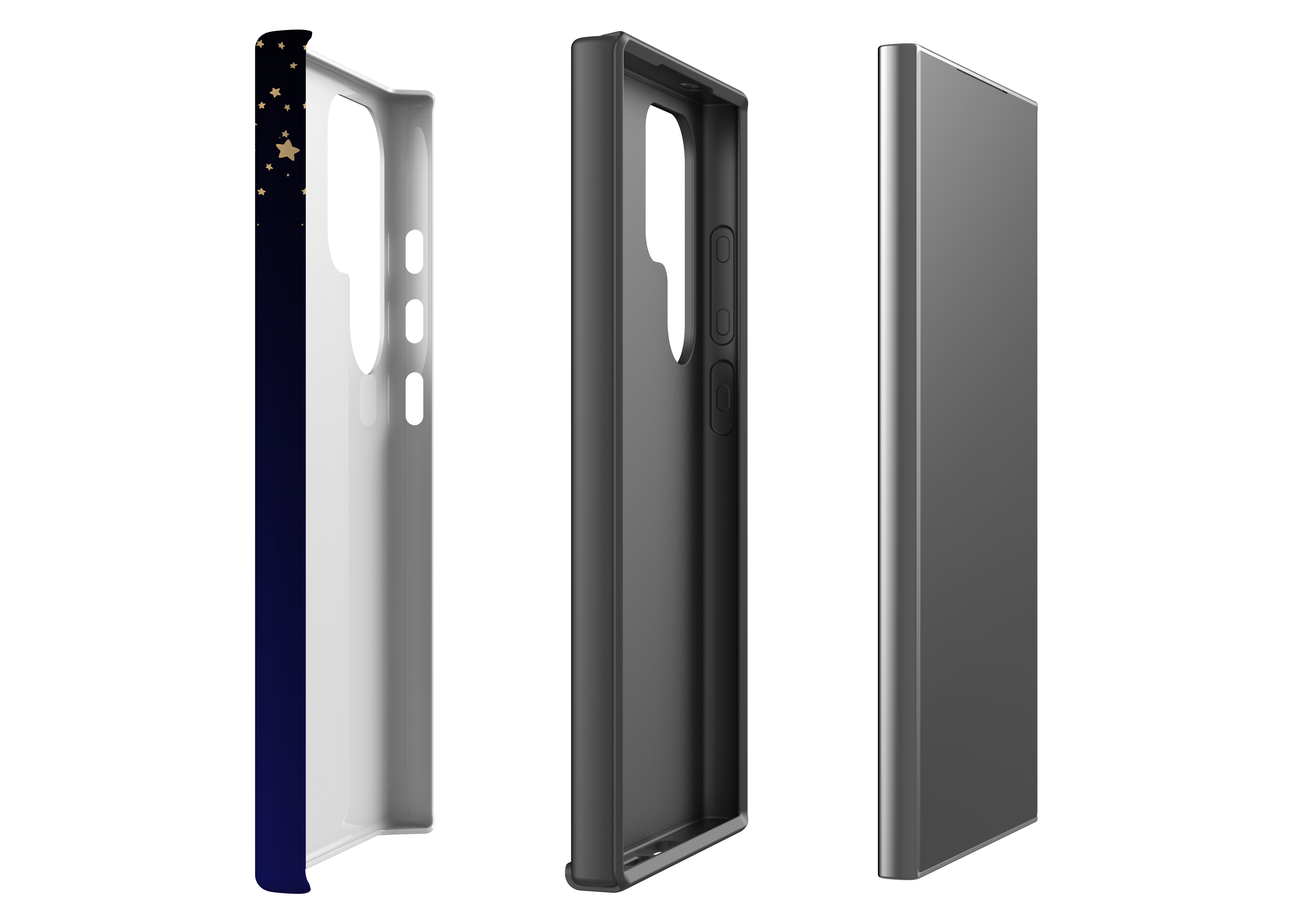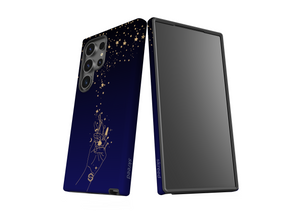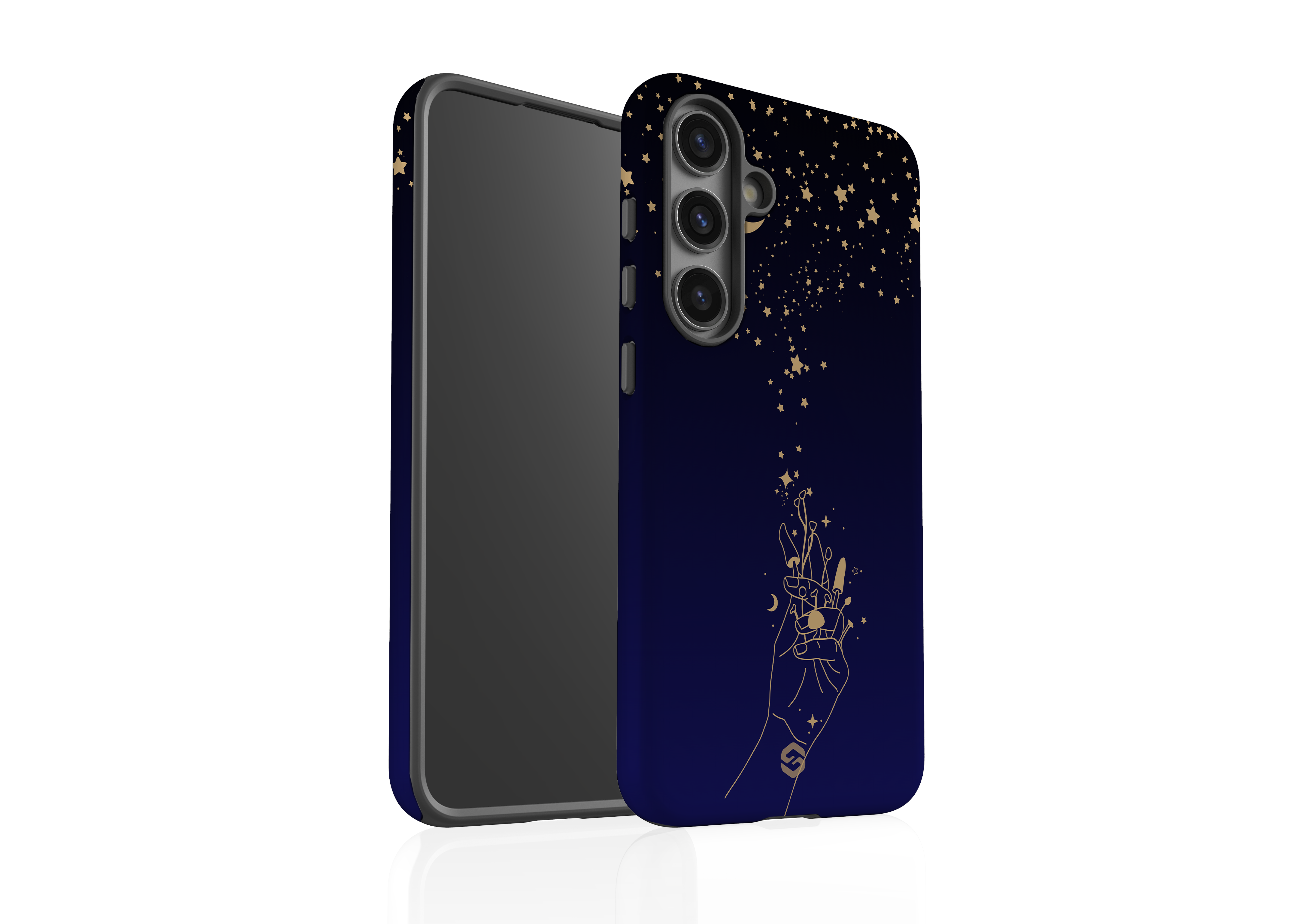 Prepare to get starry-eyed with the Stardust Spell Case, crafted for the Samsung Galaxy S24 series. This magical design features a golden hand reaching into a field of stars and the moons, in a dreamy art style against a rich navy backdrop. Elegant and enchanting, the gold accents shimmer like secrets whispered by the stars.